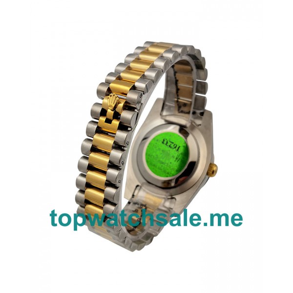 The luxury fake Rolex Day-Date UK features a white & gray dial and includes a 41 mm steel & gold case, which is best option for men for formal occasions. The high quality automatic movement guarantees the high precision and reliability of the best 1:1 replica Rolex.